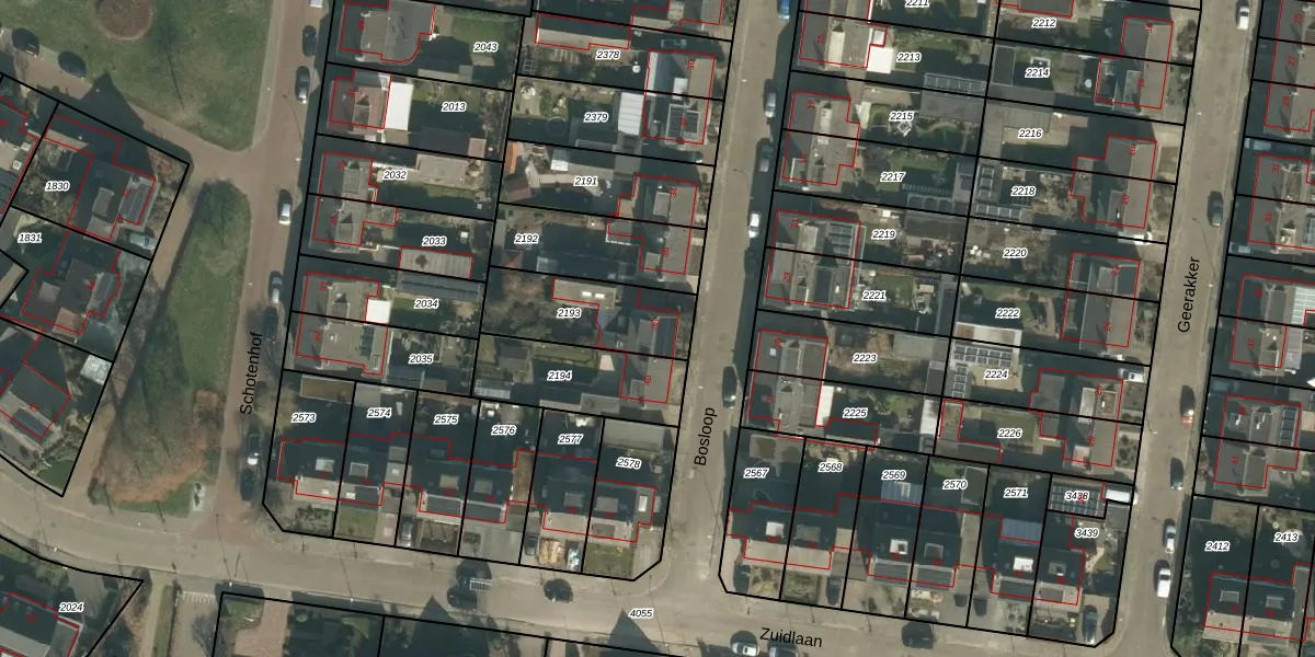 Het perceel waarop Bosloop 38 staat heeft een oppervlakte van 324 m². Dit is een groot perceel. De perceeloppervlakte wordt geregistreerd door het Kadaster. Gedetailleerde informatie over de maten van dit perceel kunt u vinden in het rapport Kadastrale kaart met maatvoering van Bosloop 38.