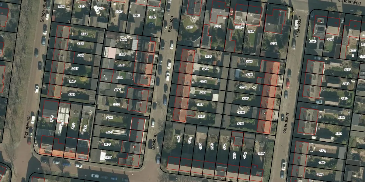 Het perceel waarop Bosloop 7 staat heeft een oppervlakte van 195 m². Dit is een middelgroot perceel. De perceeloppervlakte wordt geregistreerd door het Kadaster. Gedetailleerde informatie over de maten van dit perceel kunt u vinden in het rapport Kadastrale kaart met maatvoering van Bosloop 7.