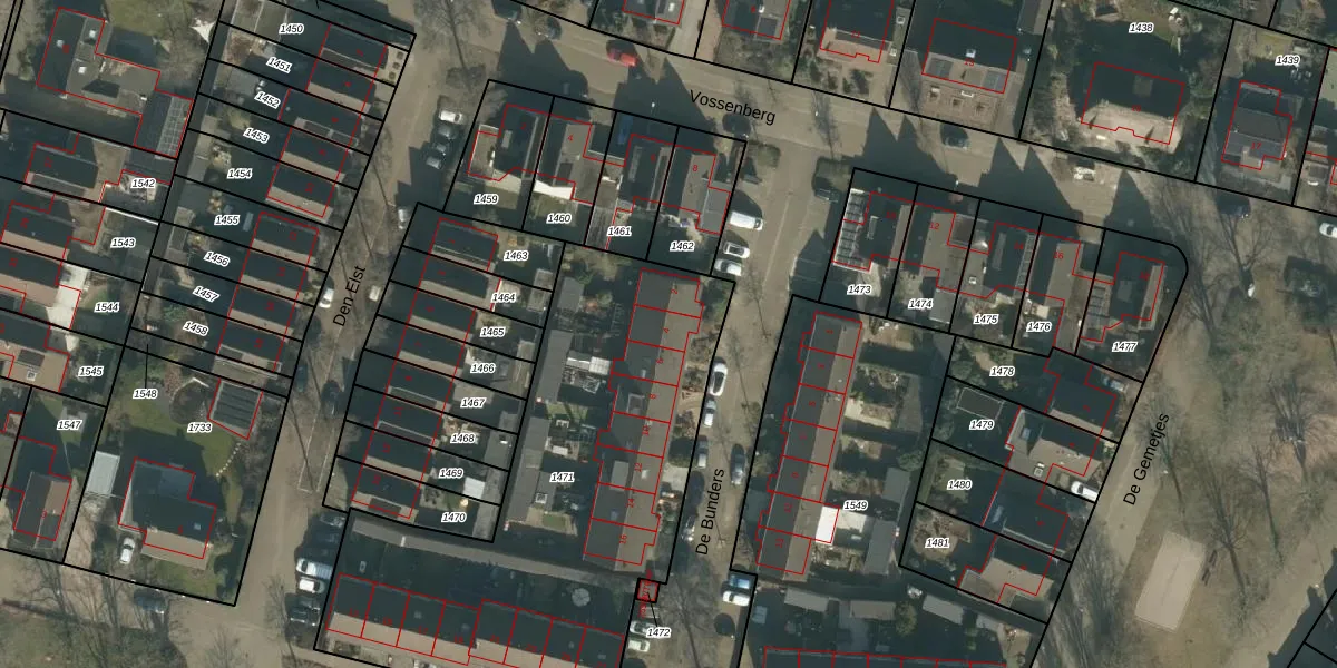 Het perceel waarop De Bunders 4 staat heeft een oppervlakte van 2189 m². Dit is een zeer groot perceel. De perceeloppervlakte wordt geregistreerd door het Kadaster. Gedetailleerde informatie over de maten van dit perceel kunt u vinden in het rapport Kadastrale kaart met maatvoering van De Bunders 4.