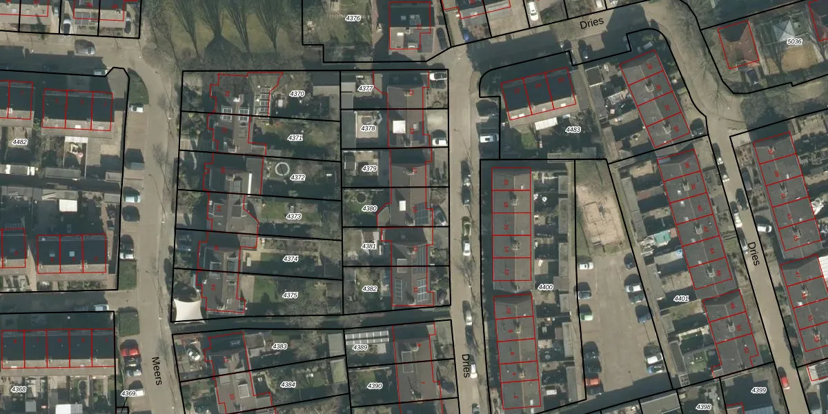 Het perceel waarop Dries 15 staat heeft een oppervlakte van 246 m². Dit is een middelgroot perceel. De perceeloppervlakte wordt geregistreerd door het Kadaster. Gedetailleerde informatie over de maten van dit perceel kunt u vinden in het rapport Kadastrale kaart met maatvoering van Dries 15.