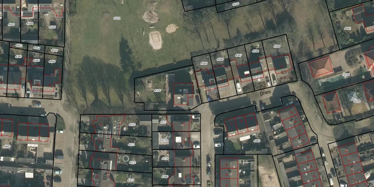 Het perceel waarop Dries 23 staat heeft een oppervlakte van 670 m². Dit is een groot perceel. De perceeloppervlakte wordt geregistreerd door het Kadaster. Gedetailleerde informatie over de maten van dit perceel kunt u vinden in het rapport Kadastrale kaart met maatvoering van Dries 23.