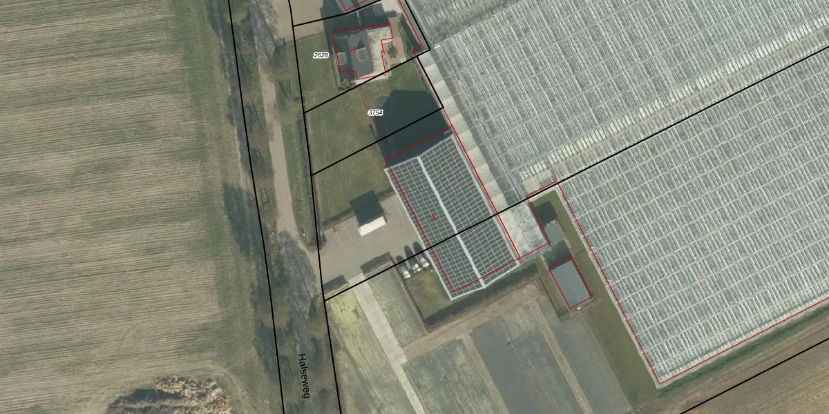 Het perceel waarop Halseweg 2-B staat heeft een oppervlakte van 2,9 ha. Dit is een zeer groot perceel. De perceeloppervlakte wordt geregistreerd door het Kadaster. Gedetailleerde informatie over de maten van dit perceel kunt u vinden in het rapport Kadastrale kaart met maatvoering van Halseweg 2-B.
