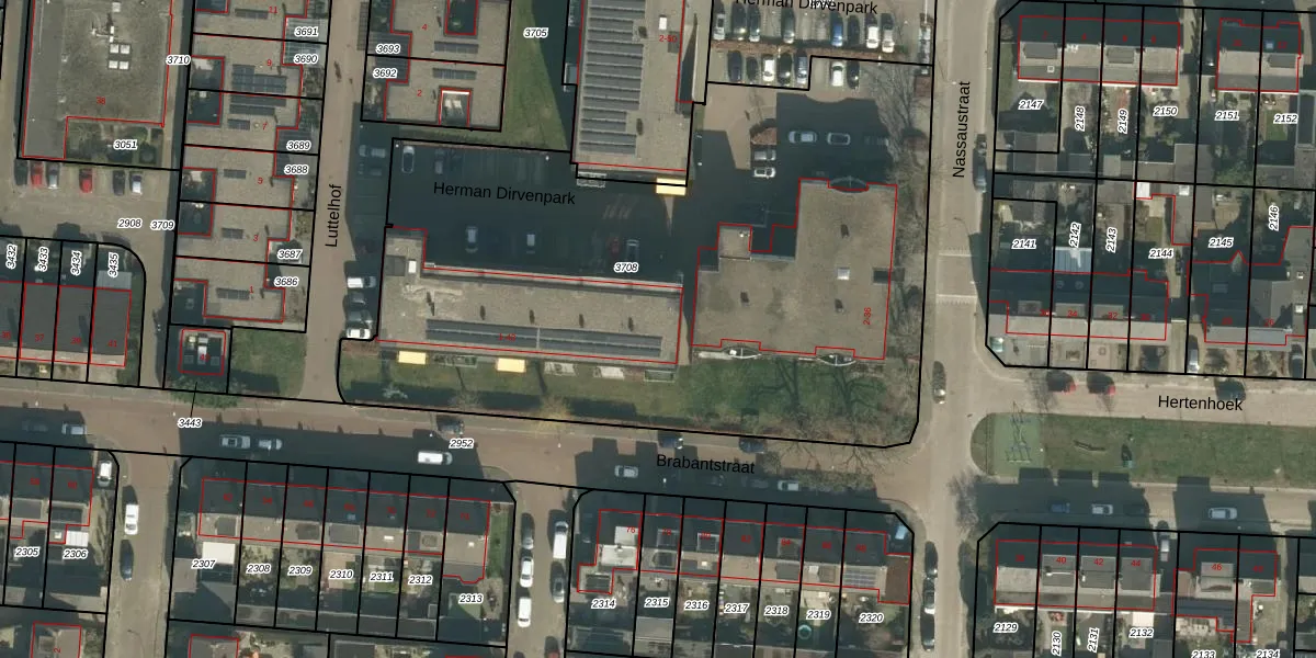 Het perceel waarop Herman Dirvenpark 33 staat heeft een oppervlakte van 3870 m². Dit is een zeer groot perceel. De perceeloppervlakte wordt geregistreerd door het Kadaster. Gedetailleerde informatie over de maten van dit perceel kunt u vinden in het rapport Kadastrale kaart met maatvoering van Herman Dirvenpark 33.