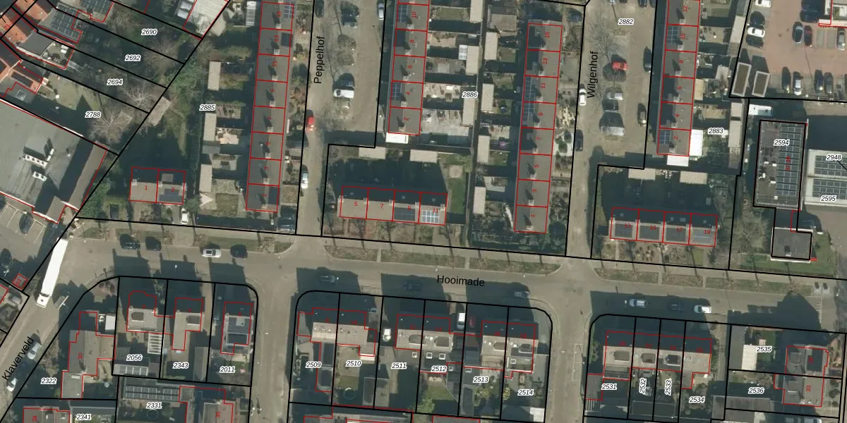 Hooimade 11 is gelegen op kadastraal perceel PSB00F2886. Deze kadastrale aanduiding is uniek en wordt gebruikt door het Kadaster om eigendomsrechten en andere zakelijke rechten vast te leggen. Het perceel maakt onderdeel uit van de kadastrale gemeente Prinsenbeek.