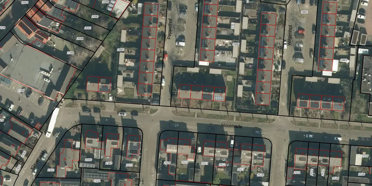 Het perceel waarop Hooimade 5 staat heeft een oppervlakte van 3410 m². Dit is een zeer groot perceel. De perceeloppervlakte wordt geregistreerd door het Kadaster. Gedetailleerde informatie over de maten van dit perceel kunt u vinden in het rapport Kadastrale kaart met maatvoering van Hooimade 5.