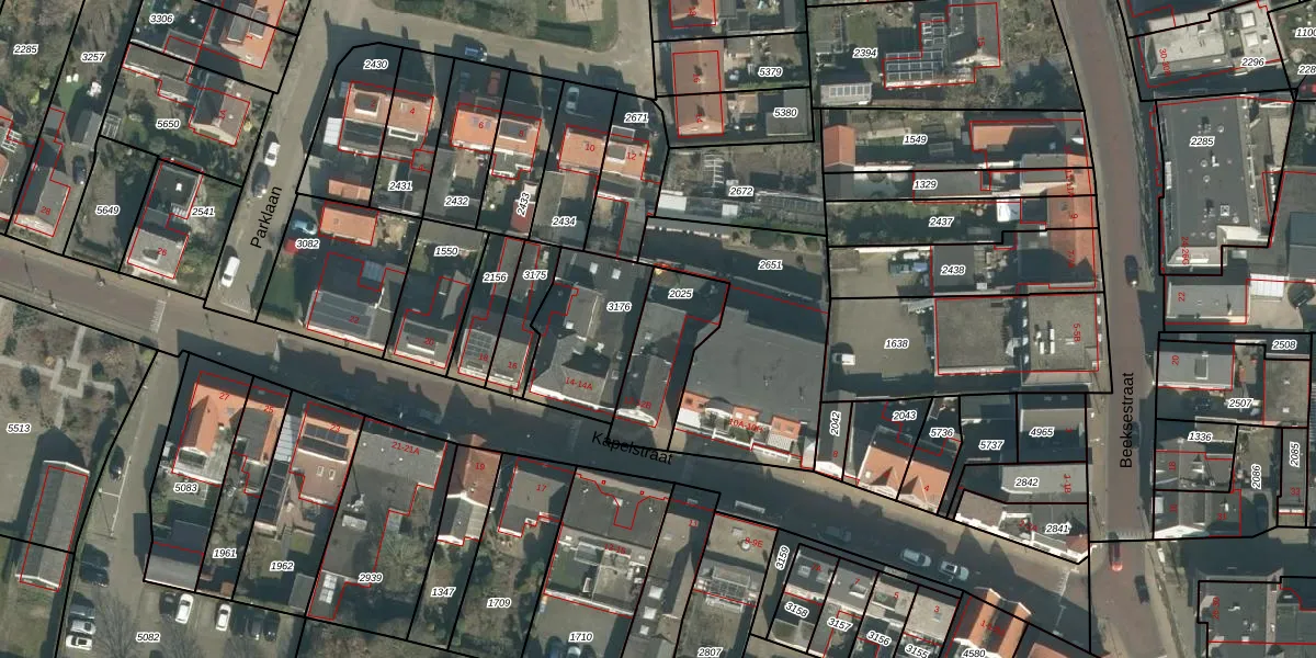 Kapelstraat 12-B is gelegen op kadastraal perceel PSB00E2025. Deze kadastrale aanduiding is uniek en wordt gebruikt door het Kadaster om eigendomsrechten en andere zakelijke rechten vast te leggen. Het perceel maakt onderdeel uit van de kadastrale gemeente Prinsenbeek.