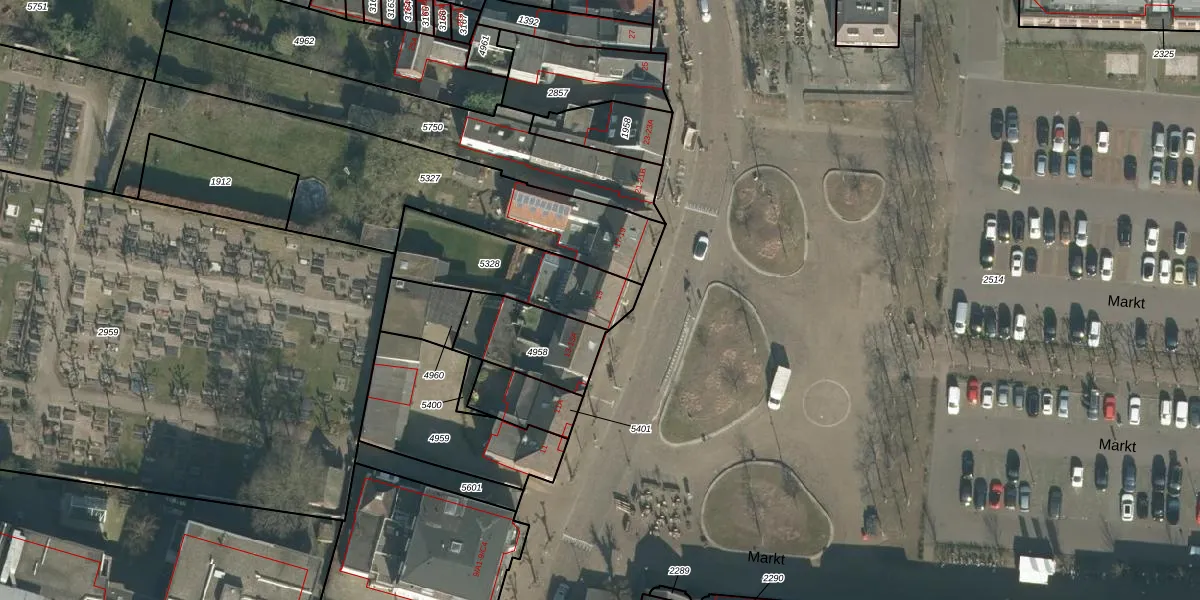 Het perceel waarop Markt 15 staat heeft een oppervlakte van 410 m². Dit is een groot perceel. De perceeloppervlakte wordt geregistreerd door het Kadaster. Gedetailleerde informatie over de maten van dit perceel kunt u vinden in het rapport Kadastrale kaart met maatvoering van Markt 15.