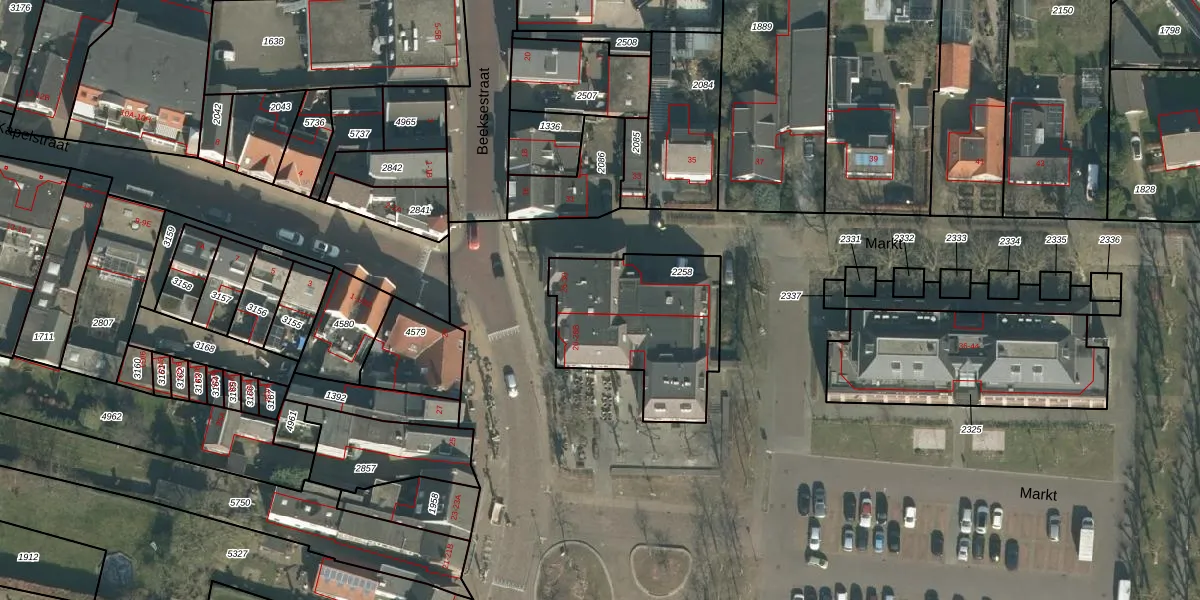 Het perceel waarop Markt 26 staat heeft een oppervlakte van 610 m². Dit is een groot perceel. De perceeloppervlakte wordt geregistreerd door het Kadaster. Gedetailleerde informatie over de maten van dit perceel kunt u vinden in het rapport Kadastrale kaart met maatvoering van Markt 26.