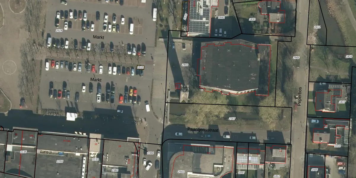 Het perceel waarop Markt 32-A staat heeft een oppervlakte van 2421 m². Dit is een zeer groot perceel. De perceeloppervlakte wordt geregistreerd door het Kadaster. Gedetailleerde informatie over de maten van dit perceel kunt u vinden in het rapport Kadastrale kaart met maatvoering van Markt 32-A.