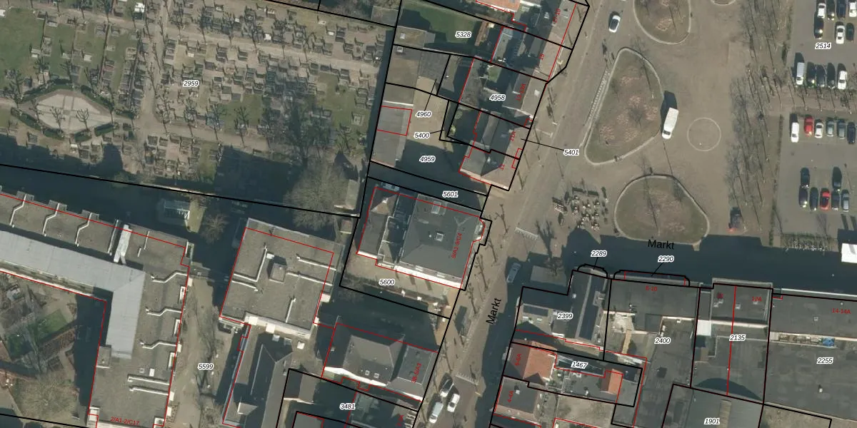 Het perceel waarop Markt 9-C1 staat heeft een oppervlakte van 750 m². Dit is een groot perceel. De perceeloppervlakte wordt geregistreerd door het Kadaster. Gedetailleerde informatie over de maten van dit perceel kunt u vinden in het rapport Kadastrale kaart met maatvoering van Markt 9-C1.