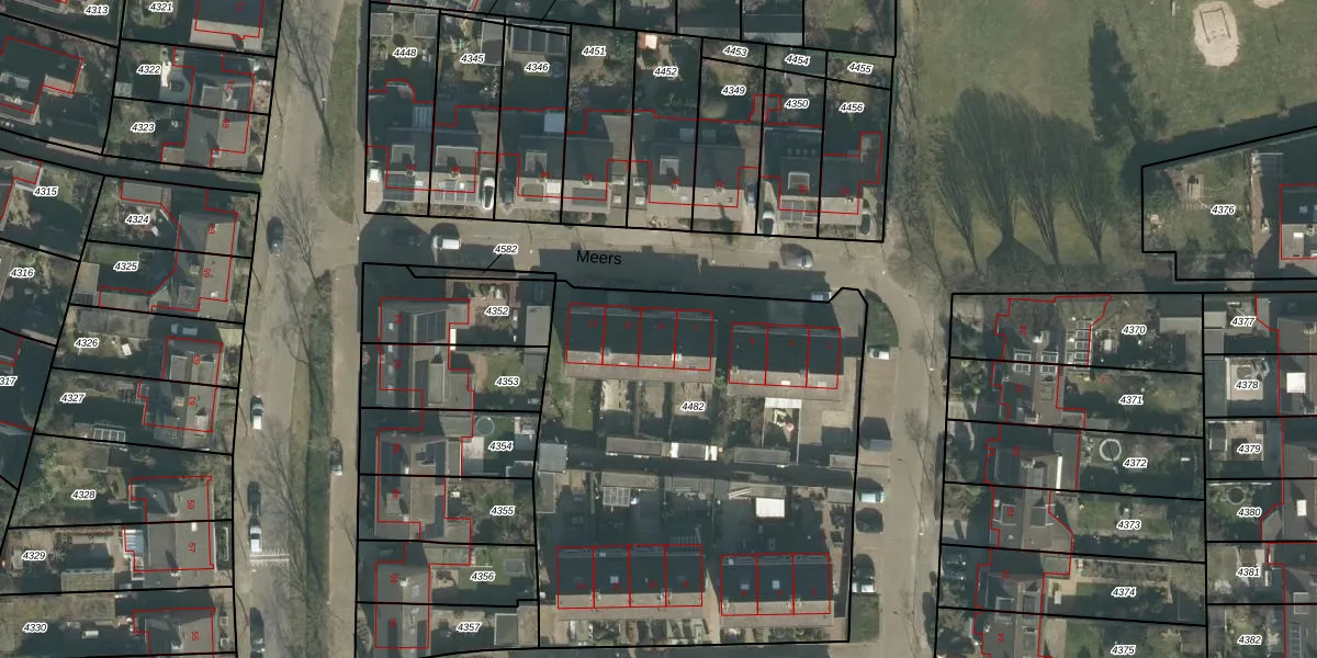 Het perceel waarop Meers 9 staat heeft een oppervlakte van 2550 m². Dit is een zeer groot perceel. De perceeloppervlakte wordt geregistreerd door het Kadaster. Gedetailleerde informatie over de maten van dit perceel kunt u vinden in het rapport Kadastrale kaart met maatvoering van Meers 9.