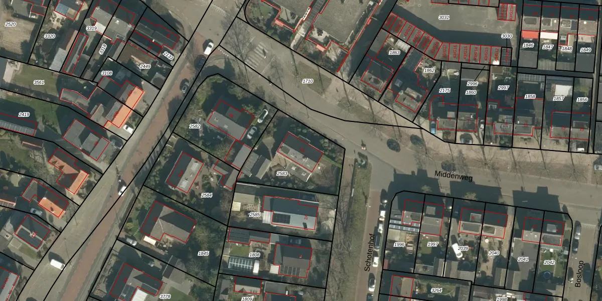 Middenweg 2-A is gelegen op kadastraal perceel PSB00F2583. Deze kadastrale aanduiding is uniek en wordt gebruikt door het Kadaster om eigendomsrechten en andere zakelijke rechten vast te leggen. Het perceel maakt onderdeel uit van de kadastrale gemeente Prinsenbeek.