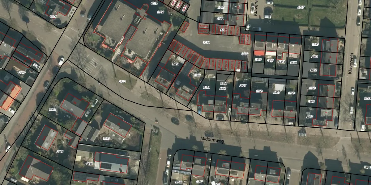 Gebruik de zoekbalk of klik op een perceel voor informatie over de adressen binnen dit perceel.
