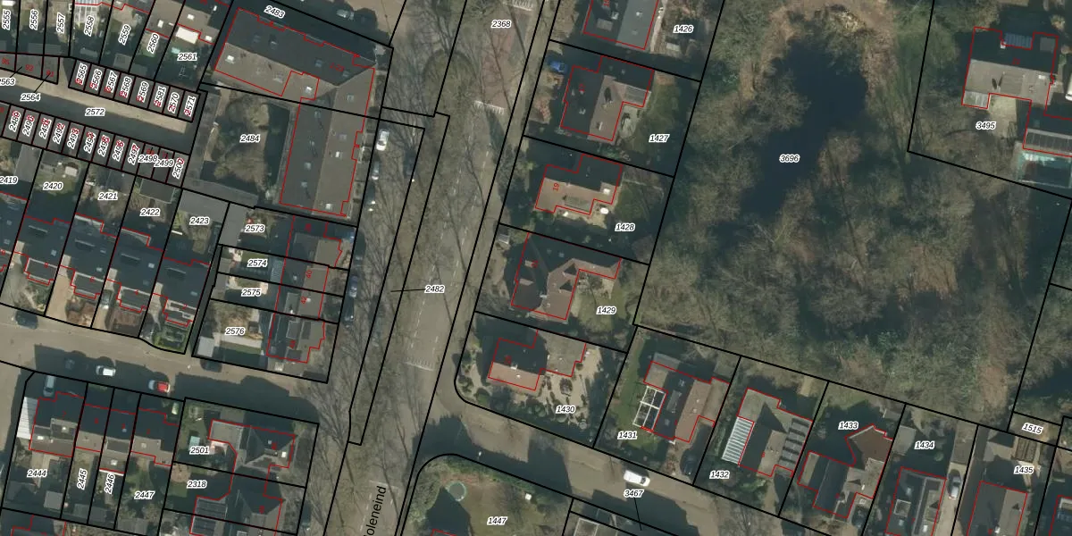 Gebruik de zoekbalk of klik op een perceel voor informatie over de adressen binnen dit perceel.