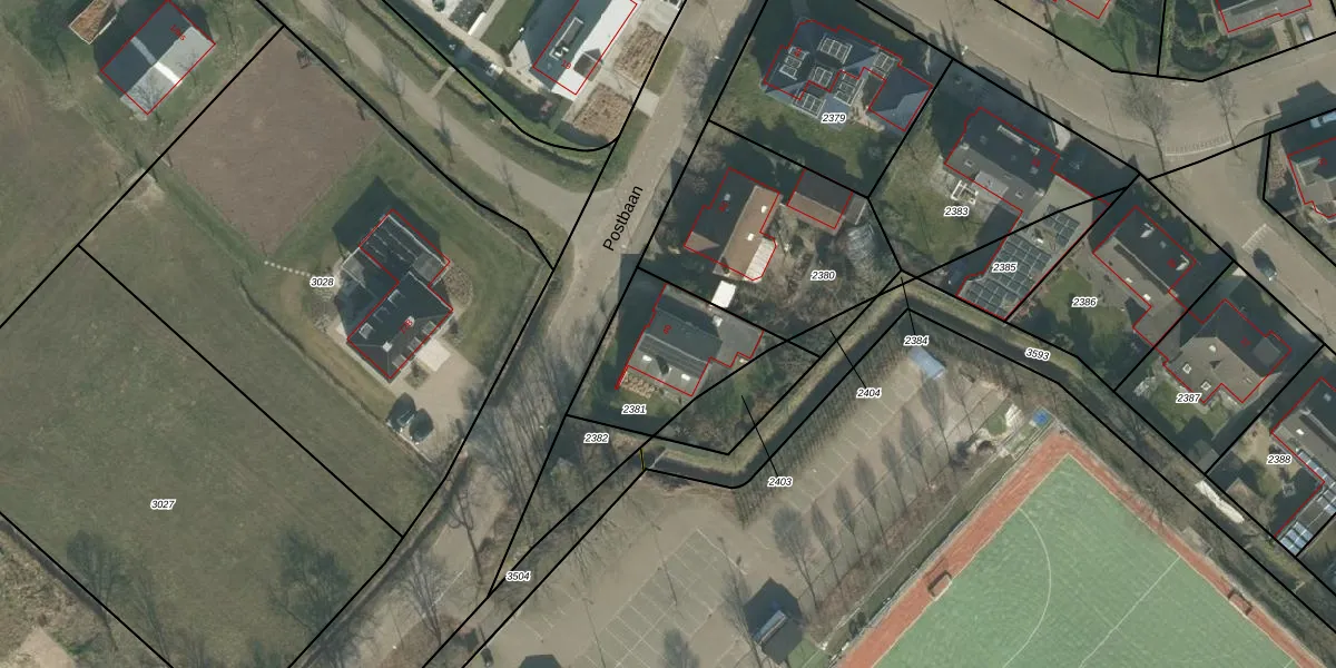 Postbaan 40 is gelegen op kadastraal perceel PSB00H2381. Deze kadastrale aanduiding is uniek en wordt gebruikt door het Kadaster om eigendomsrechten en andere zakelijke rechten vast te leggen. Het perceel maakt onderdeel uit van de kadastrale gemeente Prinsenbeek.