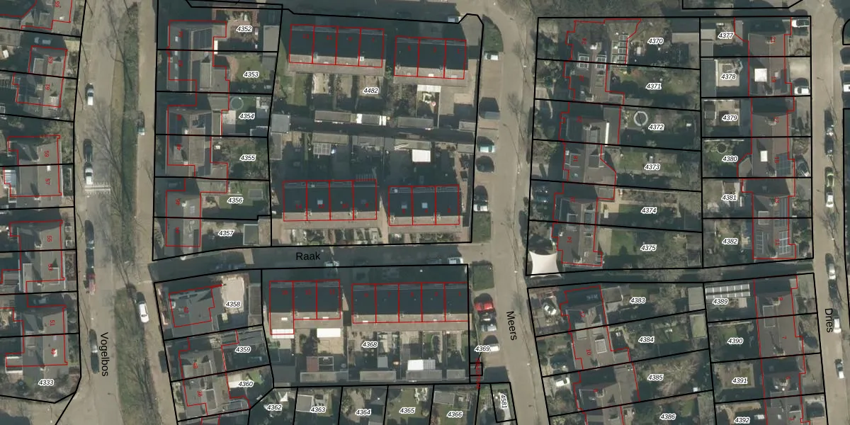 Raak 4 is gelegen op kadastraal perceel PSB00E4482. Deze kadastrale aanduiding is uniek en wordt gebruikt door het Kadaster om eigendomsrechten en andere zakelijke rechten vast te leggen. Het perceel maakt onderdeel uit van de kadastrale gemeente Prinsenbeek.
