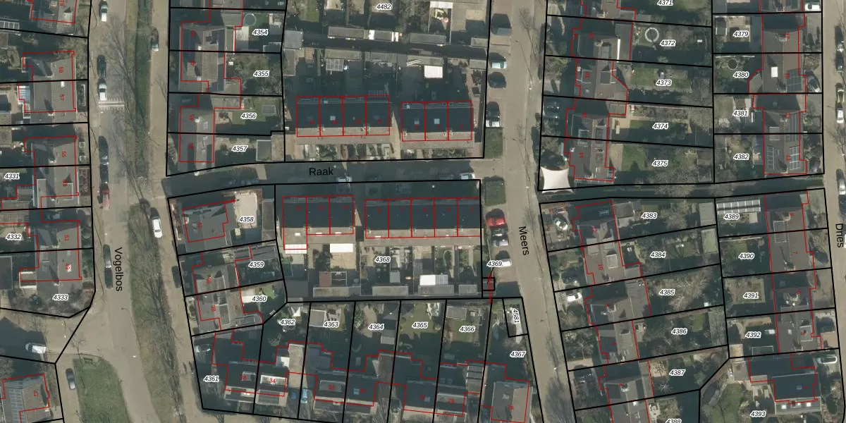 Raak 5 is gelegen op kadastraal perceel PSB00E4368. Deze kadastrale aanduiding is uniek en wordt gebruikt door het Kadaster om eigendomsrechten en andere zakelijke rechten vast te leggen. Het perceel maakt onderdeel uit van de kadastrale gemeente Prinsenbeek.