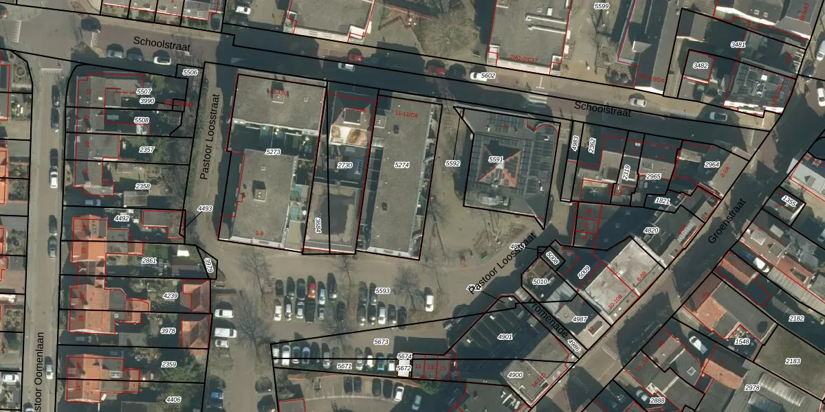 Het perceel waarop Schoolstraat 11-B3 staat heeft een oppervlakte van 594 m². Dit is een groot perceel. De perceeloppervlakte wordt geregistreerd door het Kadaster. Gedetailleerde informatie over de maten van dit perceel kunt u vinden in het rapport Kadastrale kaart met maatvoering van Schoolstraat 11-B3.