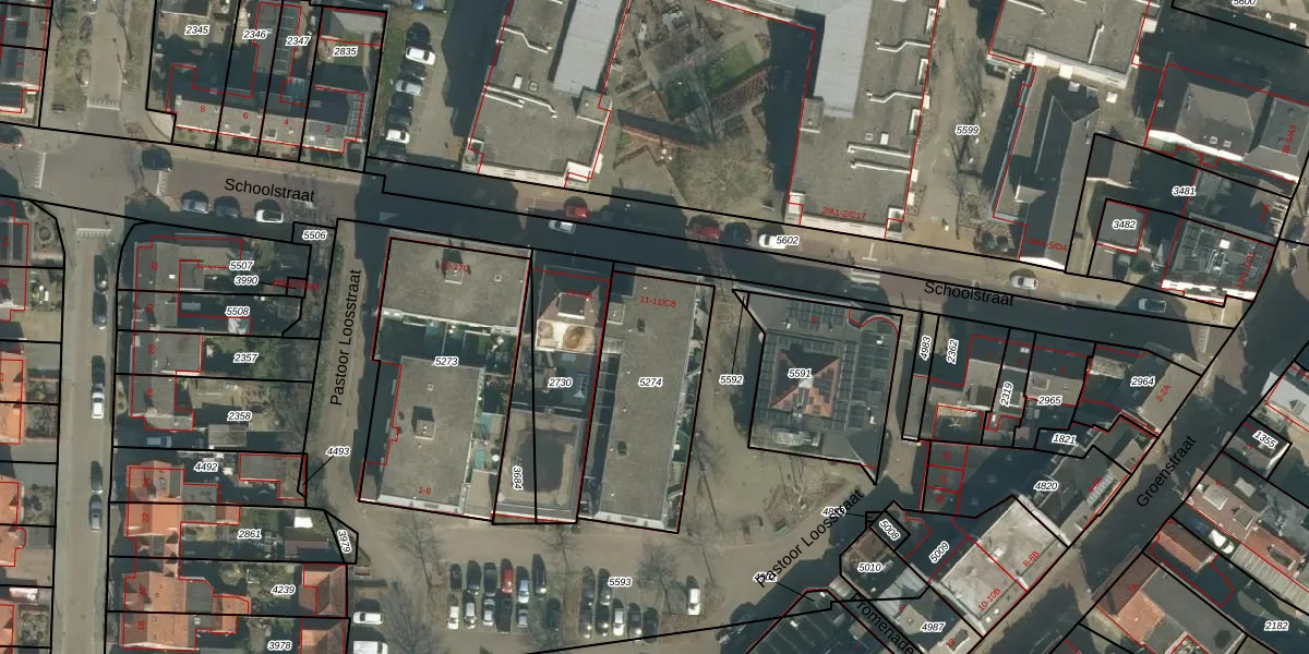 Het perceel waarop Schoolstraat 11-C5 staat heeft een oppervlakte van 594 m². Dit is een groot perceel. De perceeloppervlakte wordt geregistreerd door het Kadaster. Gedetailleerde informatie over de maten van dit perceel kunt u vinden in het rapport Kadastrale kaart met maatvoering van Schoolstraat 11-C5.