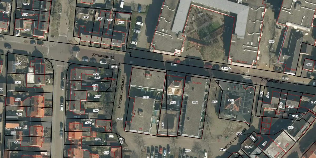 Schoolstraat 17-B is gelegen op kadastraal perceel PSB00E5273. Deze kadastrale aanduiding is uniek en wordt gebruikt door het Kadaster om eigendomsrechten en andere zakelijke rechten vast te leggen. Het perceel maakt onderdeel uit van de kadastrale gemeente Prinsenbeek.