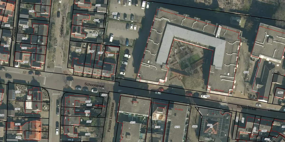 Het perceel waarop Schoolstraat 2-C1 staat heeft een oppervlakte van 7714 m². Dit is een zeer groot perceel. De perceeloppervlakte wordt geregistreerd door het Kadaster. Gedetailleerde informatie over de maten van dit perceel kunt u vinden in het rapport Kadastrale kaart met maatvoering van Schoolstraat 2-C1.