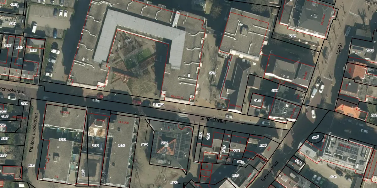 Het perceel waarop Schoolstraat 2-B18 staat heeft een oppervlakte van 7714 m². Dit is een zeer groot perceel. De perceeloppervlakte wordt geregistreerd door het Kadaster. Gedetailleerde informatie over de maten van dit perceel kunt u vinden in het rapport Kadastrale kaart met maatvoering van Schoolstraat 2-B18.