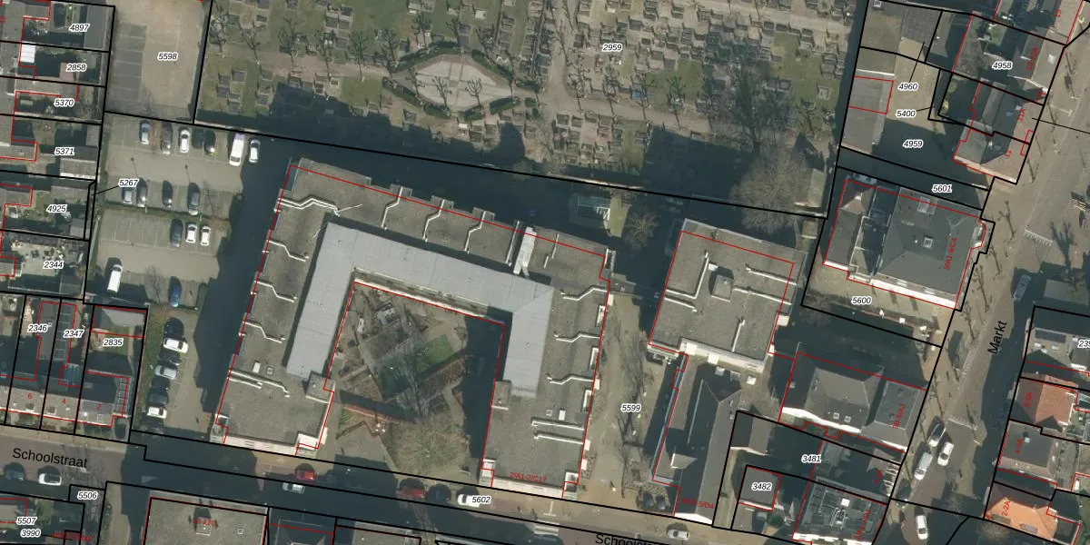 Het perceel waarop Schoolstraat 2-C12 staat heeft een oppervlakte van 7714 m². Dit is een zeer groot perceel. De perceeloppervlakte wordt geregistreerd door het Kadaster. Gedetailleerde informatie over de maten van dit perceel kunt u vinden in het rapport Kadastrale kaart met maatvoering van Schoolstraat 2-C12.