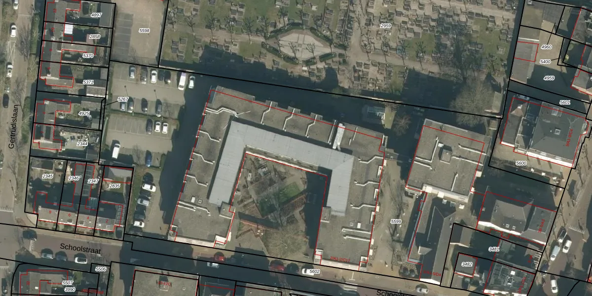 Het perceel waarop Schoolstraat 2-C10 staat heeft een oppervlakte van 7714 m². Dit is een zeer groot perceel. De perceeloppervlakte wordt geregistreerd door het Kadaster. Gedetailleerde informatie over de maten van dit perceel kunt u vinden in het rapport Kadastrale kaart met maatvoering van Schoolstraat 2-C10.