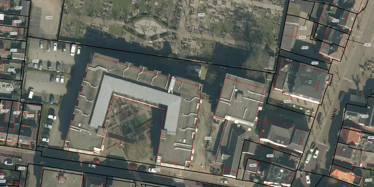 Het perceel waarop Schoolstraat 2-A8 staat heeft een oppervlakte van 7714 m². Dit is een zeer groot perceel. De perceeloppervlakte wordt geregistreerd door het Kadaster. Gedetailleerde informatie over de maten van dit perceel kunt u vinden in het rapport Kadastrale kaart met maatvoering van Schoolstraat 2-A8.