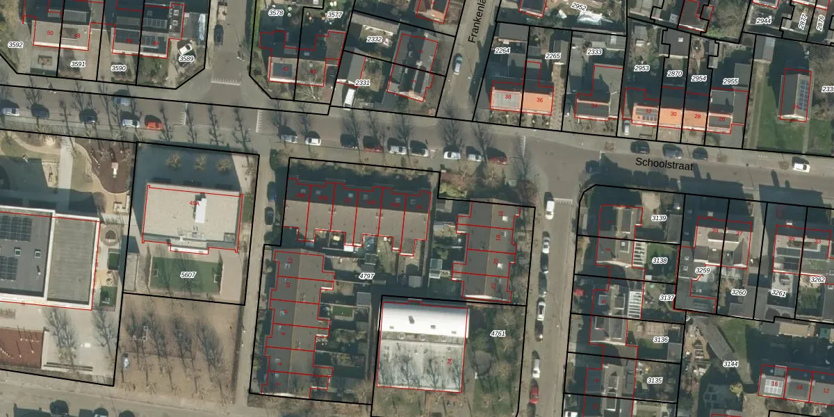 Het perceel waarop Schoolstraat 41 staat heeft een oppervlakte van 2485 m². Dit is een zeer groot perceel. De perceeloppervlakte wordt geregistreerd door het Kadaster. Gedetailleerde informatie over de maten van dit perceel kunt u vinden in het rapport Kadastrale kaart met maatvoering van Schoolstraat 41.