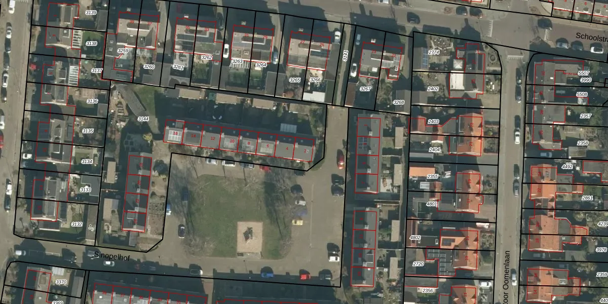 Het perceel waarop Sinopelhof 2 staat heeft een oppervlakte van 2310 m². Dit is een zeer groot perceel. De perceeloppervlakte wordt geregistreerd door het Kadaster. Gedetailleerde informatie over de maten van dit perceel kunt u vinden in het rapport Kadastrale kaart met maatvoering van Sinopelhof 2.