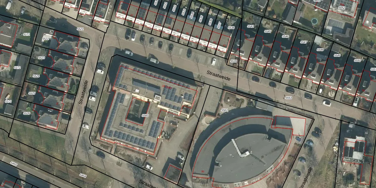 Het perceel waarop Straatweide 18-A1 staat heeft een oppervlakte van 2805 m². Dit is een zeer groot perceel. De perceeloppervlakte wordt geregistreerd door het Kadaster. Gedetailleerde informatie over de maten van dit perceel kunt u vinden in het rapport Kadastrale kaart met maatvoering van Straatweide 18-A1.