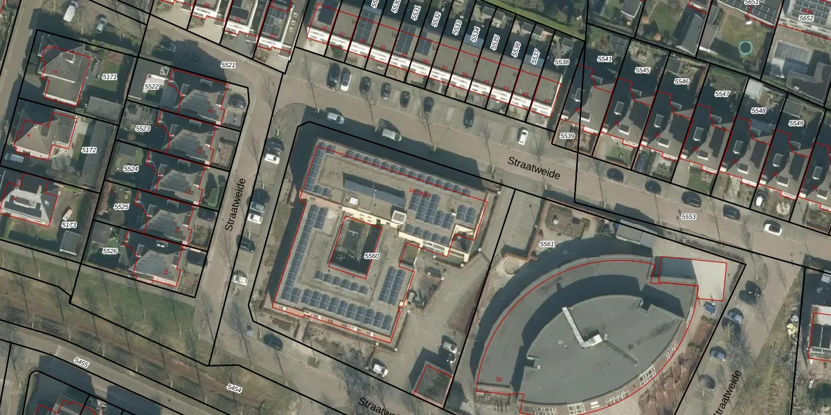 Het perceel waarop Straatweide 18-B3 staat heeft een oppervlakte van 2805 m². Dit is een zeer groot perceel. De perceeloppervlakte wordt geregistreerd door het Kadaster. Gedetailleerde informatie over de maten van dit perceel kunt u vinden in het rapport Kadastrale kaart met maatvoering van Straatweide 18-B3.