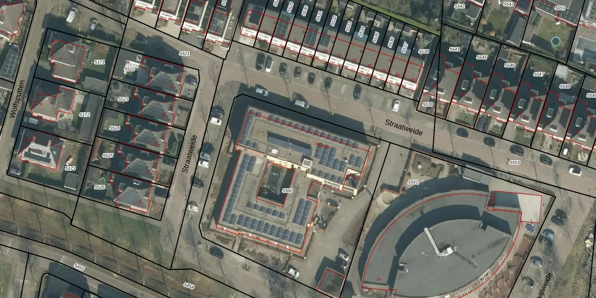 Het perceel waarop Straatweide 18-B4 staat heeft een oppervlakte van 2805 m². Dit is een zeer groot perceel. De perceeloppervlakte wordt geregistreerd door het Kadaster. Gedetailleerde informatie over de maten van dit perceel kunt u vinden in het rapport Kadastrale kaart met maatvoering van Straatweide 18-B4.
