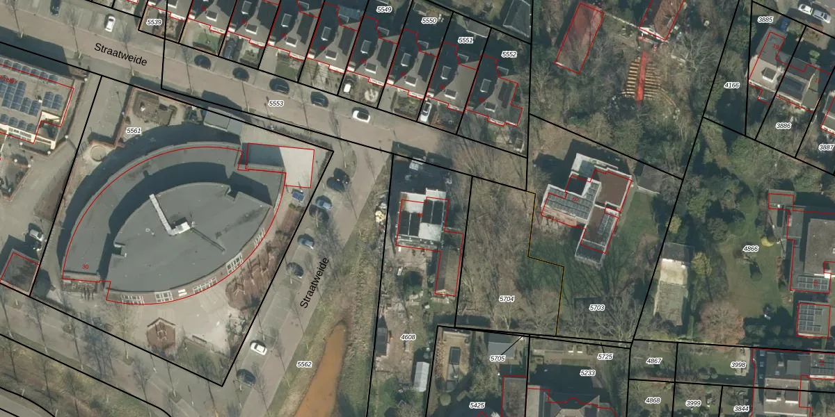 Het perceel waarop Straatweide 69 staat heeft een oppervlakte van 1250 m². Dit is een zeer groot perceel. De perceeloppervlakte wordt geregistreerd door het Kadaster. Gedetailleerde informatie over de maten van dit perceel kunt u vinden in het rapport Kadastrale kaart met maatvoering van Straatweide 69.