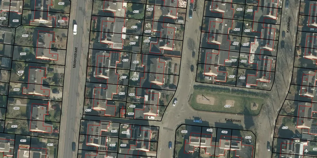 Thornstraat 21 is gelegen op kadastraal perceel PSB00E4082. Deze kadastrale aanduiding is uniek en wordt gebruikt door het Kadaster om eigendomsrechten en andere zakelijke rechten vast te leggen. Het perceel maakt onderdeel uit van de kadastrale gemeente Prinsenbeek.