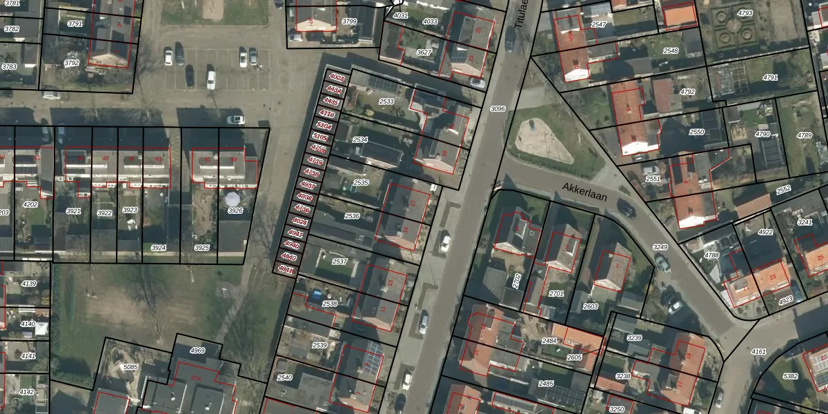 Het perceel waarop Titulaerlaan 17 staat heeft een oppervlakte van 286 m². Dit is een middelgroot perceel. De perceeloppervlakte wordt geregistreerd door het Kadaster. Gedetailleerde informatie over de maten van dit perceel kunt u vinden in het rapport Kadastrale kaart met maatvoering van Titulaerlaan 17.