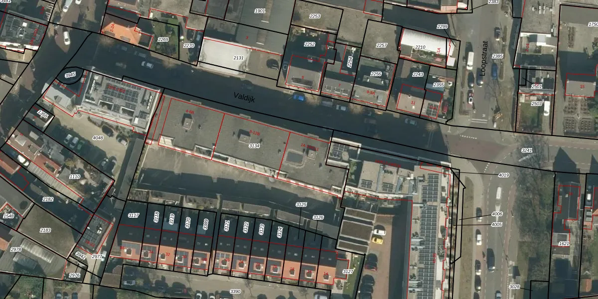 Valdijk 14-A1 is gelegen op kadastraal perceel PSB00F3134. Deze kadastrale aanduiding is uniek en wordt gebruikt door het Kadaster om eigendomsrechten en andere zakelijke rechten vast te leggen. Het perceel maakt onderdeel uit van de kadastrale gemeente Prinsenbeek.