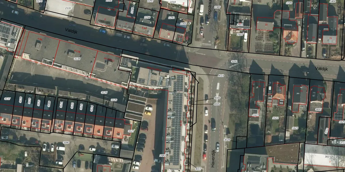 Valdijk 14-B16 is gelegen op kadastraal perceel PSB00F2941. Deze kadastrale aanduiding is uniek en wordt gebruikt door het Kadaster om eigendomsrechten en andere zakelijke rechten vast te leggen. Het perceel maakt onderdeel uit van de kadastrale gemeente Prinsenbeek.