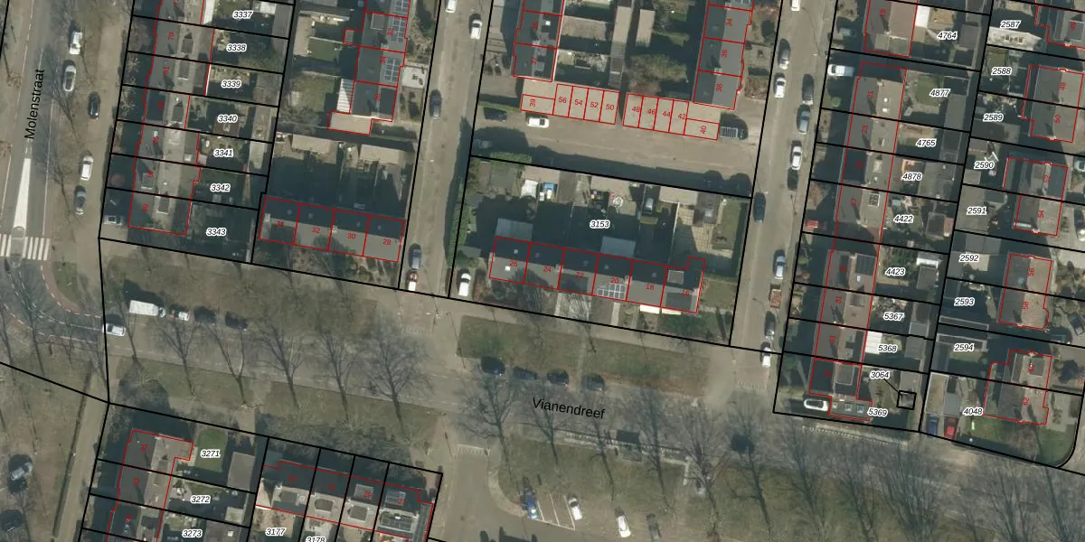 Vianendreef 24 is gelegen op kadastraal perceel PSB00E3153. Deze kadastrale aanduiding is uniek en wordt gebruikt door het Kadaster om eigendomsrechten en andere zakelijke rechten vast te leggen. Het perceel maakt onderdeel uit van de kadastrale gemeente Prinsenbeek.