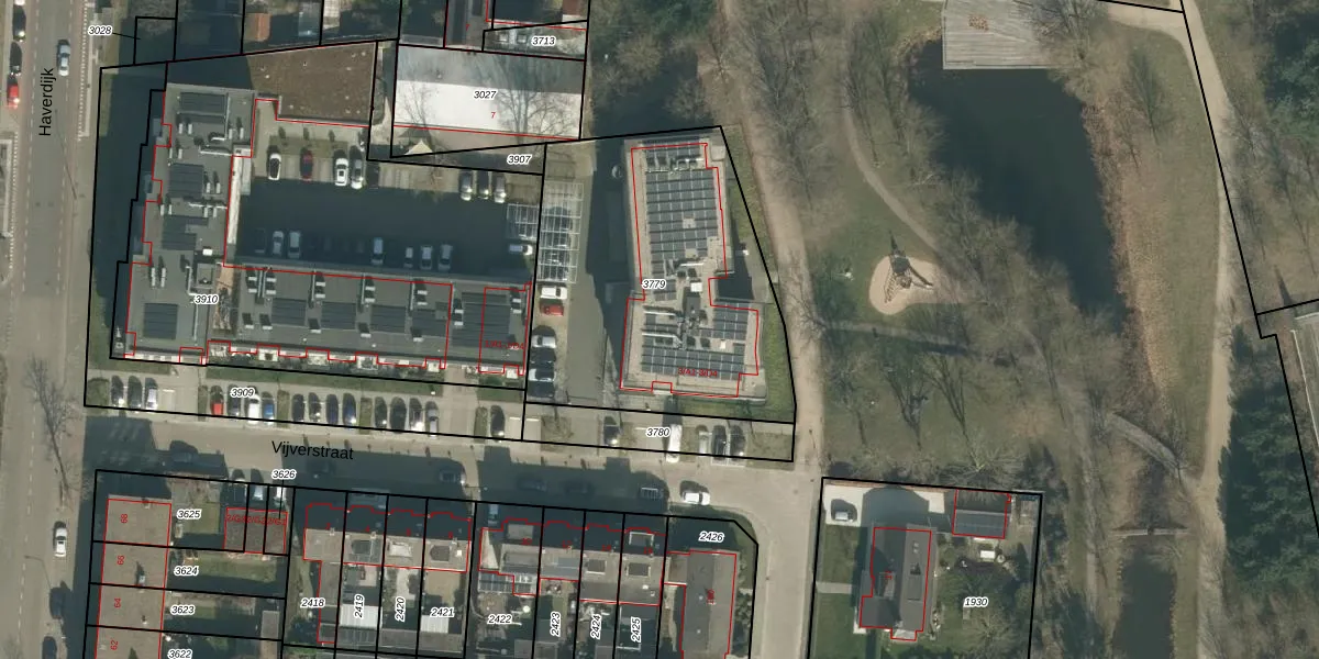 Het perceel waarop Vijverstraat 3-D1 staat heeft een oppervlakte van 1470 m². Dit is een zeer groot perceel. De perceeloppervlakte wordt geregistreerd door het Kadaster. Gedetailleerde informatie over de maten van dit perceel kunt u vinden in het rapport Kadastrale kaart met maatvoering van Vijverstraat 3-D1.