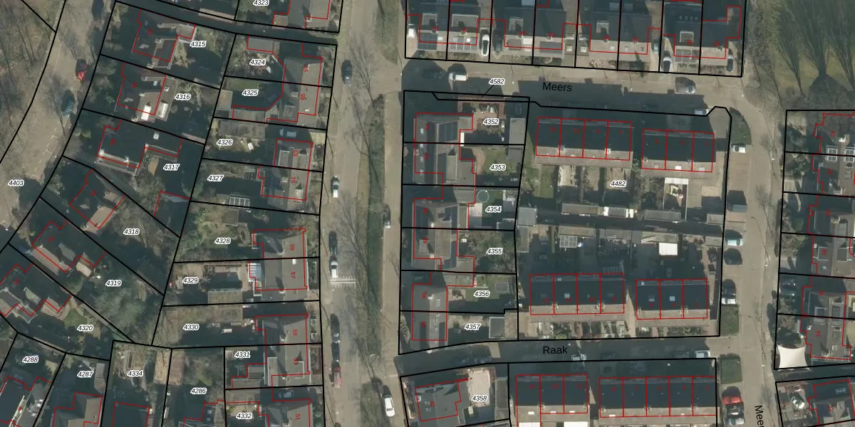 Gebruik de zoekbalk of klik op een perceel voor informatie over de adressen binnen dit perceel.
