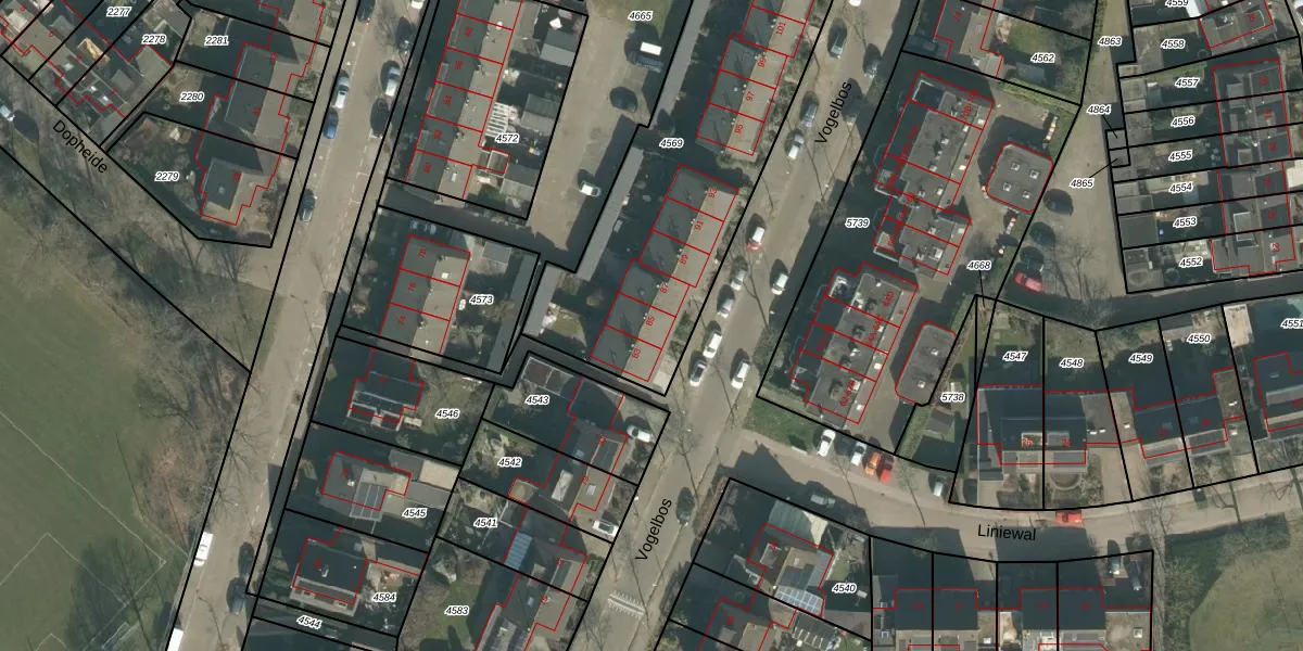 Vogelbos 85 is gelegen op kadastraal perceel PSB00E4569. Deze kadastrale aanduiding is uniek en wordt gebruikt door het Kadaster om eigendomsrechten en andere zakelijke rechten vast te leggen. Het perceel maakt onderdeel uit van de kadastrale gemeente Prinsenbeek.