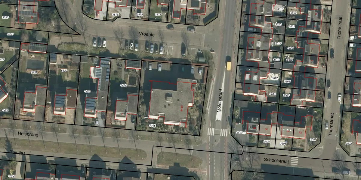 Vroente 44 is gelegen op kadastraal perceel PSB00E5175. Deze kadastrale aanduiding is uniek en wordt gebruikt door het Kadaster om eigendomsrechten en andere zakelijke rechten vast te leggen. Het perceel maakt onderdeel uit van de kadastrale gemeente Prinsenbeek.