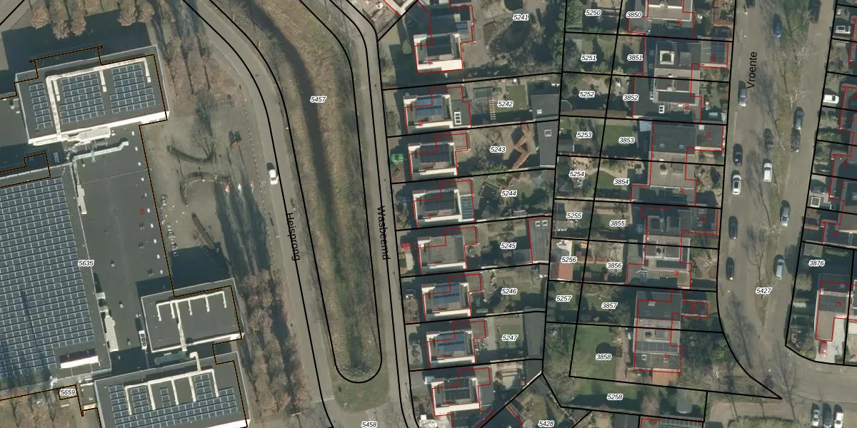 Gebruik de zoekbalk of klik op een perceel voor informatie over de adressen binnen dit perceel.
