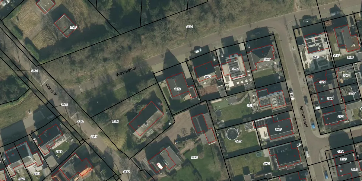 Wevershof 2 is gelegen op kadastraal perceel PSB00F3412. Deze kadastrale aanduiding is uniek en wordt gebruikt door het Kadaster om eigendomsrechten en andere zakelijke rechten vast te leggen. Het perceel maakt onderdeel uit van de kadastrale gemeente Prinsenbeek.