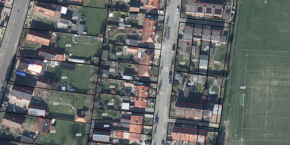 Het perceel waarop Hosterd 24 staat heeft een oppervlakte van 480 m². Dit is een groot perceel. De perceeloppervlakte wordt geregistreerd door het Kadaster. Gedetailleerde informatie over de maten van dit perceel kunt u vinden in het rapport Kadastrale kaart met maatvoering van Hosterd 24.