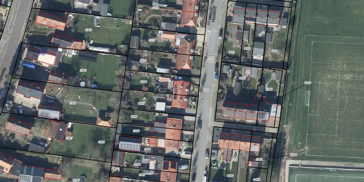 Het perceel waarop Hosterd 26 staat heeft een oppervlakte van 440 m². Dit is een groot perceel. De perceeloppervlakte wordt geregistreerd door het Kadaster. Gedetailleerde informatie over de maten van dit perceel kunt u vinden in het rapport Kadastrale kaart met maatvoering van Hosterd 26.