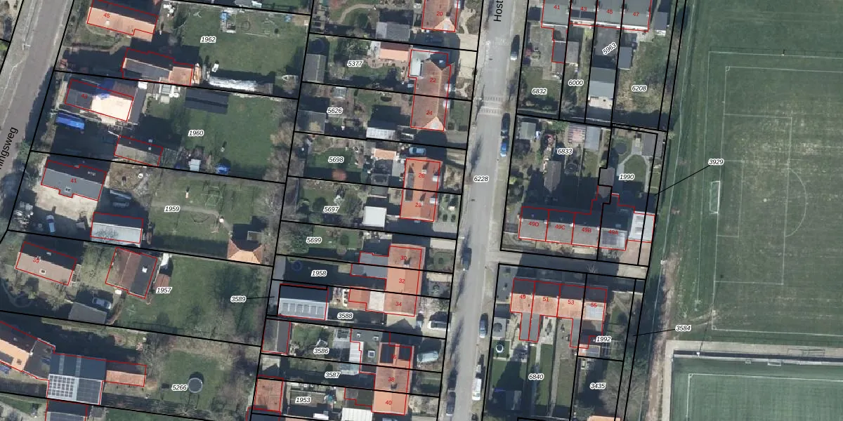 Het perceel waarop Hosterd 28 staat heeft een oppervlakte van 445 m². Dit is een groot perceel. De perceeloppervlakte wordt geregistreerd door het Kadaster. Gedetailleerde informatie over de maten van dit perceel kunt u vinden in het rapport Kadastrale kaart met maatvoering van Hosterd 28.