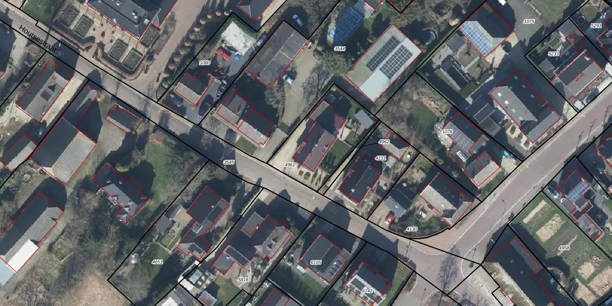Het perceel waarop Houtsestraat 1-A staat heeft een oppervlakte van 610 m². Dit is een groot perceel. De perceeloppervlakte wordt geregistreerd door het Kadaster. Gedetailleerde informatie over de maten van dit perceel kunt u vinden in het rapport Kadastrale kaart met maatvoering van Houtsestraat 1-A.